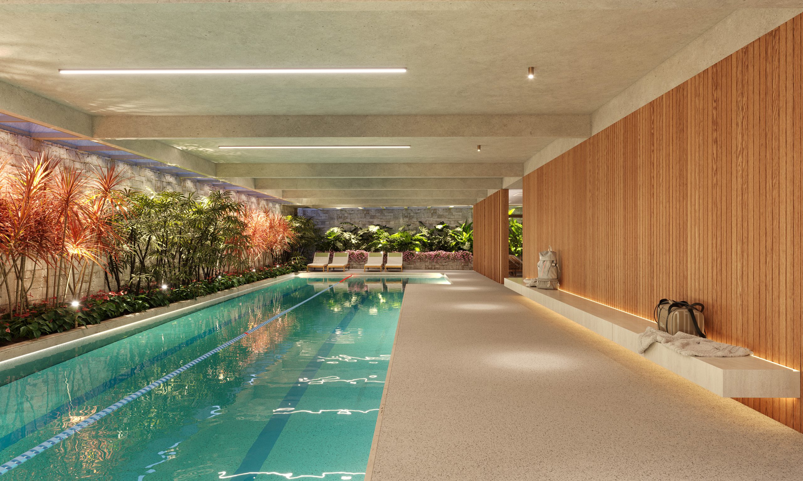 Piscina com raia, coberta e aquecida